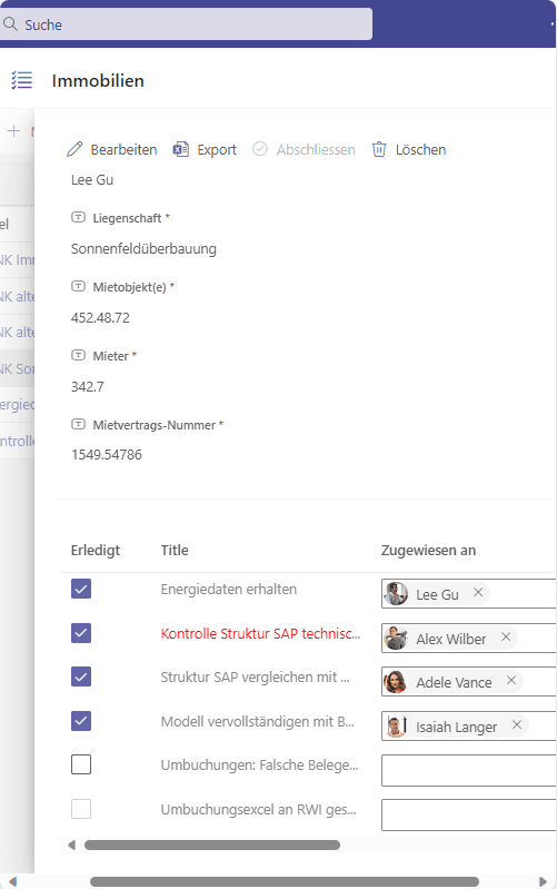 In der heutigen schnelllebigen Welt sind effektive Organisationswerkzeuge unerlässlich. Mit unserer Checklisten-Lösung bieten wir Ihnen eine einfache und intuitive Möglichkeit, Arbeitsabläufe übersichtlich und nachvollziehbar zu tracken. Ob im HR für Ein- oder Austrittsprozesse, in der Immobilienverwaltung für Prozesse wie die Erstellung Heiz- und Nebekonstenabrechungen oder sonstige Prozesse, deren einzelnen Aufgaben Sie tracken möchten, mit unserer Checkliste decken wir Ihre individuellen Anforderungen.
