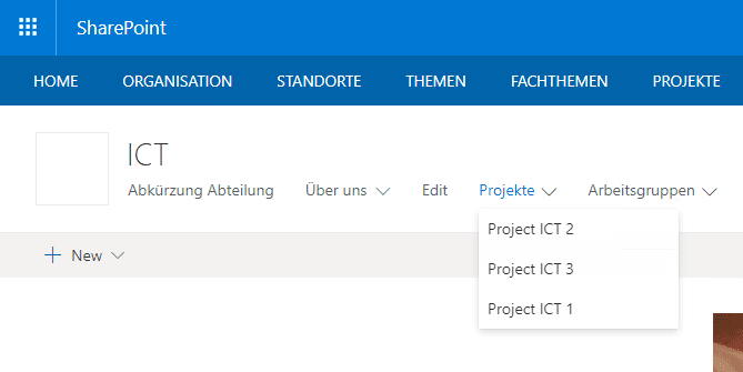 - Fügen Sie die Navigation auf allen SharePoint Sites hinzu, auf der sie benötigt wird.