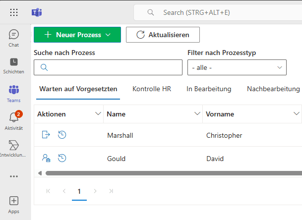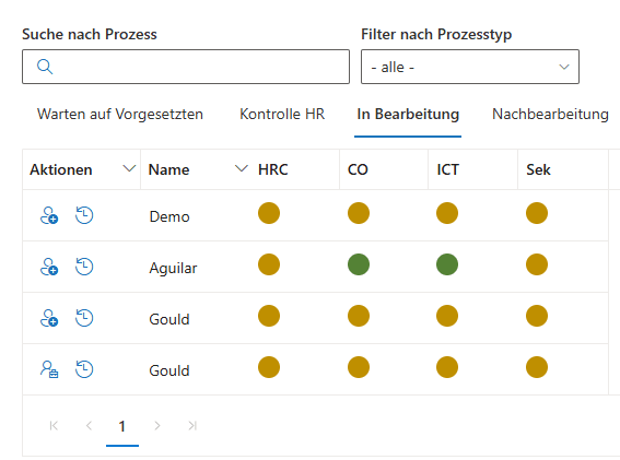 - Eine chronologische Übersicht der durchlaufenen Prozesse pro Mitarbeiter sorgt für Transparenz und erleichtert die Nachverfolgbarkeit.
