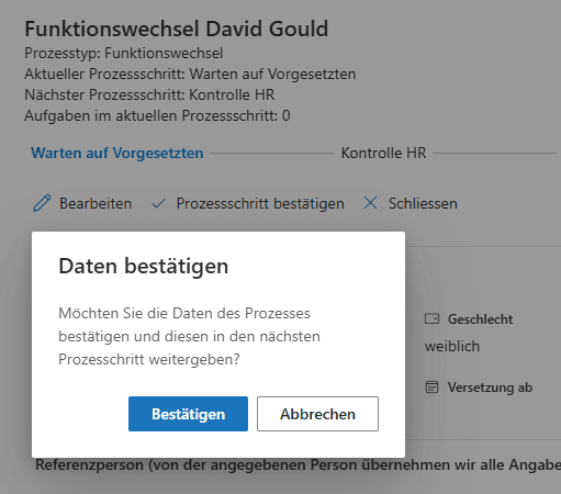 - Vorgesetzte und HR können die Prozesse vorab prüfen und freigeben, um die Datenqualität und Einhaltung interner Vorgaben sicherzustellen.