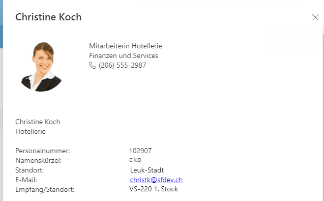 - Die Suche enthält auch ein Organigramm über welches zu weiteren Personen-Details navigiert werden kann.