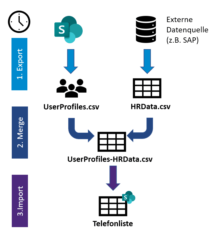 - Über die Importfunktion können Sie SharePoint-Profildaten mit zusätzlichen Attributen aus verschiedenen Datenquellen anreichern.